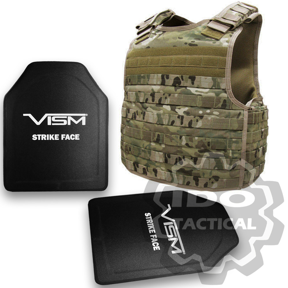 - Condor DFPC-008 Defender Plate Carrier (Multicam) + VISM Hard Ballistic stic Armor Panel Level III (UHMWPE) 10"X12" Shooters Cut / Single Curve